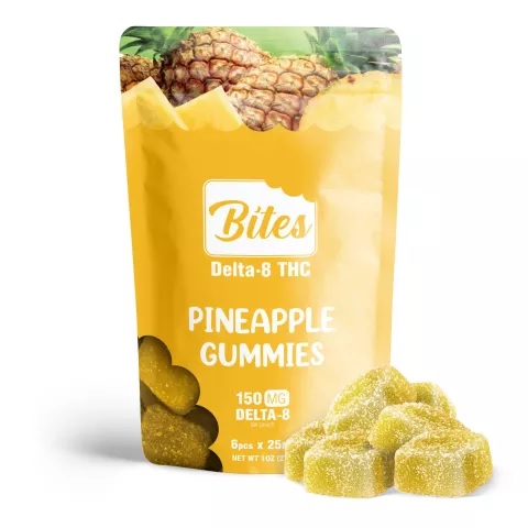 Imagine a sweet pineapple with a buzzy kick that takes you to high new levels. It’s hemp and cannabinoids in a whole new light. You can relax or go wild with these scrumptious new bites. After all, they’re the bite-size Delta-8 gummies that give you an amazing legal high. Now available in Pineapple, these Delta-8 THC bites include 150mg of your favorite new cannabinoid, the only legal hemp-derived compound that gives you an ultimate buzz. With Delta-8 Bites, you’ll feel relaxed and buzzed in new and exciting ways.